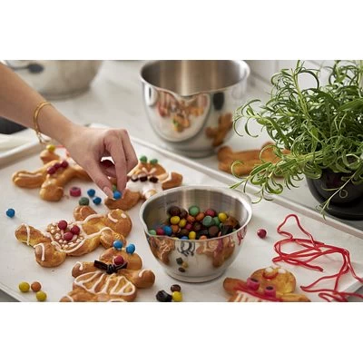 Schöne und exklusive Edelstahlversion der bekannten und beliebten Margrethe Schüssel von Rosti – Die Schüssel besteht aus 18/8 Stahl und ist innen satiniert und außen glänzend. Kann in der Spülmaschine gewaschen und im Gefrierschrank verwendet werden, jedoch nicht in der Mikrowelle.