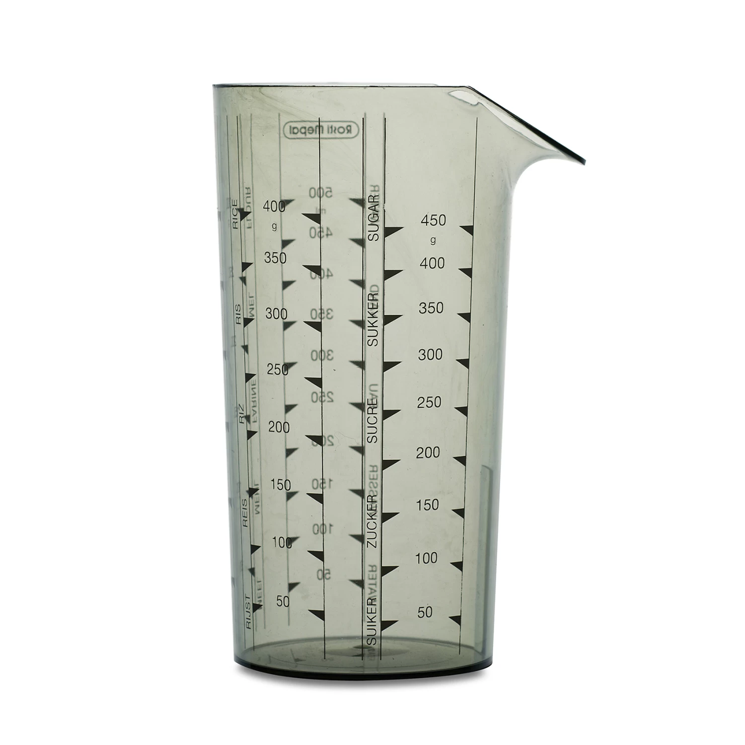 Der Rosti Messbecher 0,5 l der dänischen Marke Rosti besteht aus kratzfestem und robustem SAN-Kunststoff und hat klare Markierungen, die das Abmessen von Mehl und Zucker vereinfachen. Der Messbecher hat keine Griffe wodurch er für zusätzlichen Platz im Küchenschrank sorgt und durch seine schmale Form dennoch sehr einfach zu handhaben ist.